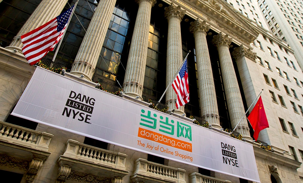 An E-Commerce China Dangdang Inc. banner hangs from the facade of the New York Stock Exchange after its IPO in 2010. (Photo: Jin Lee/Bloomberg)
