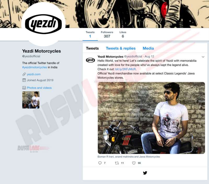 Yezdi India official Twitter and Instagram accounts launched
