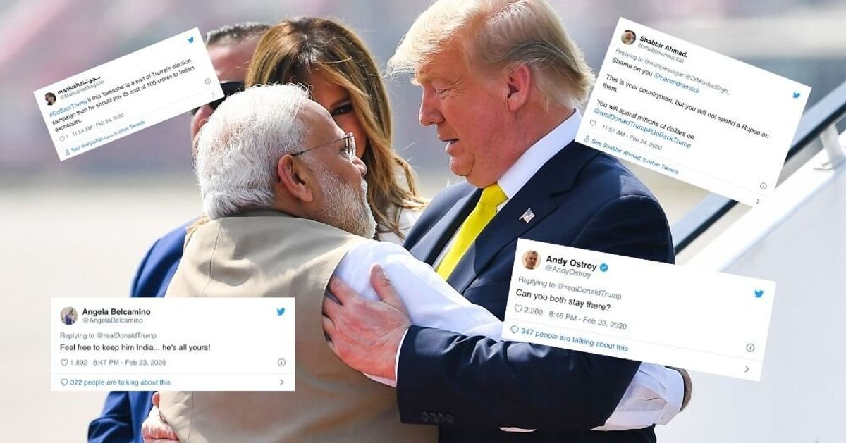 As Trump arrives in India for a 36-hour trip and Modi makes a grand show of the bonhomie between the two, people have taken to Twitter to mock the entire exercise.