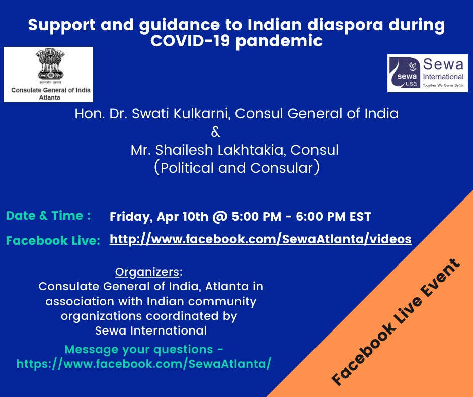 The Consulate General of India, Atlanta, is holding a Facebook live event Friday to offer guidance to Indian expatriates.