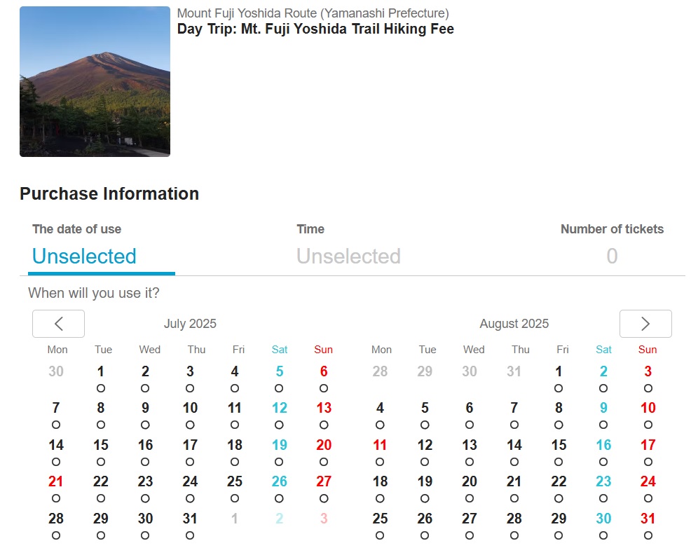 The Mt. Fuji Yoshida Trail reservation page can be found here.