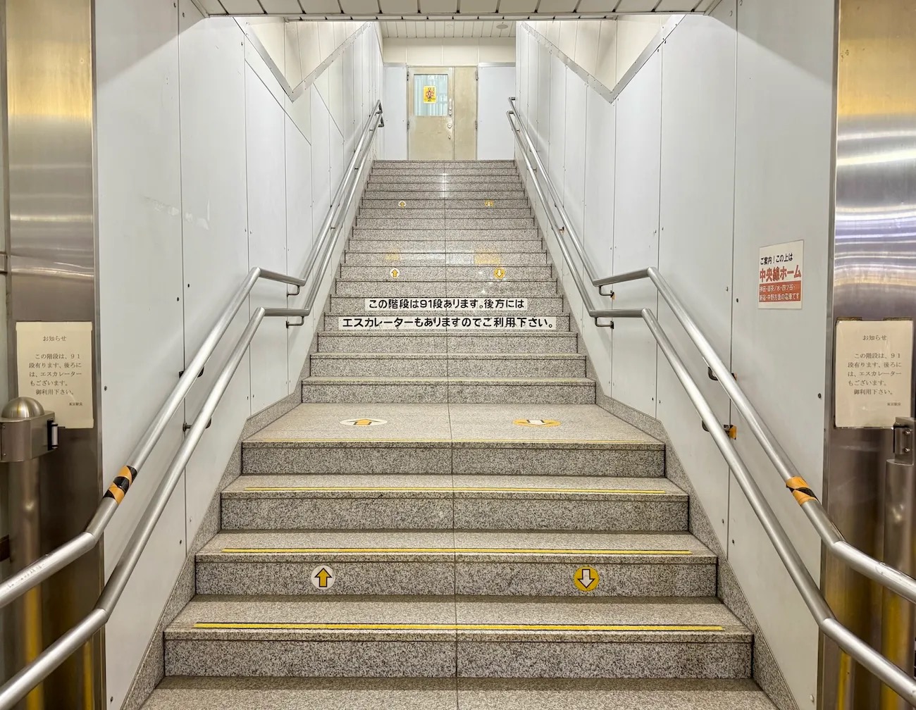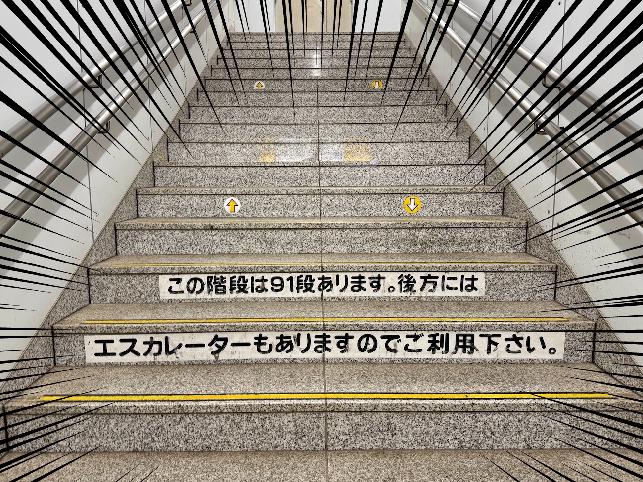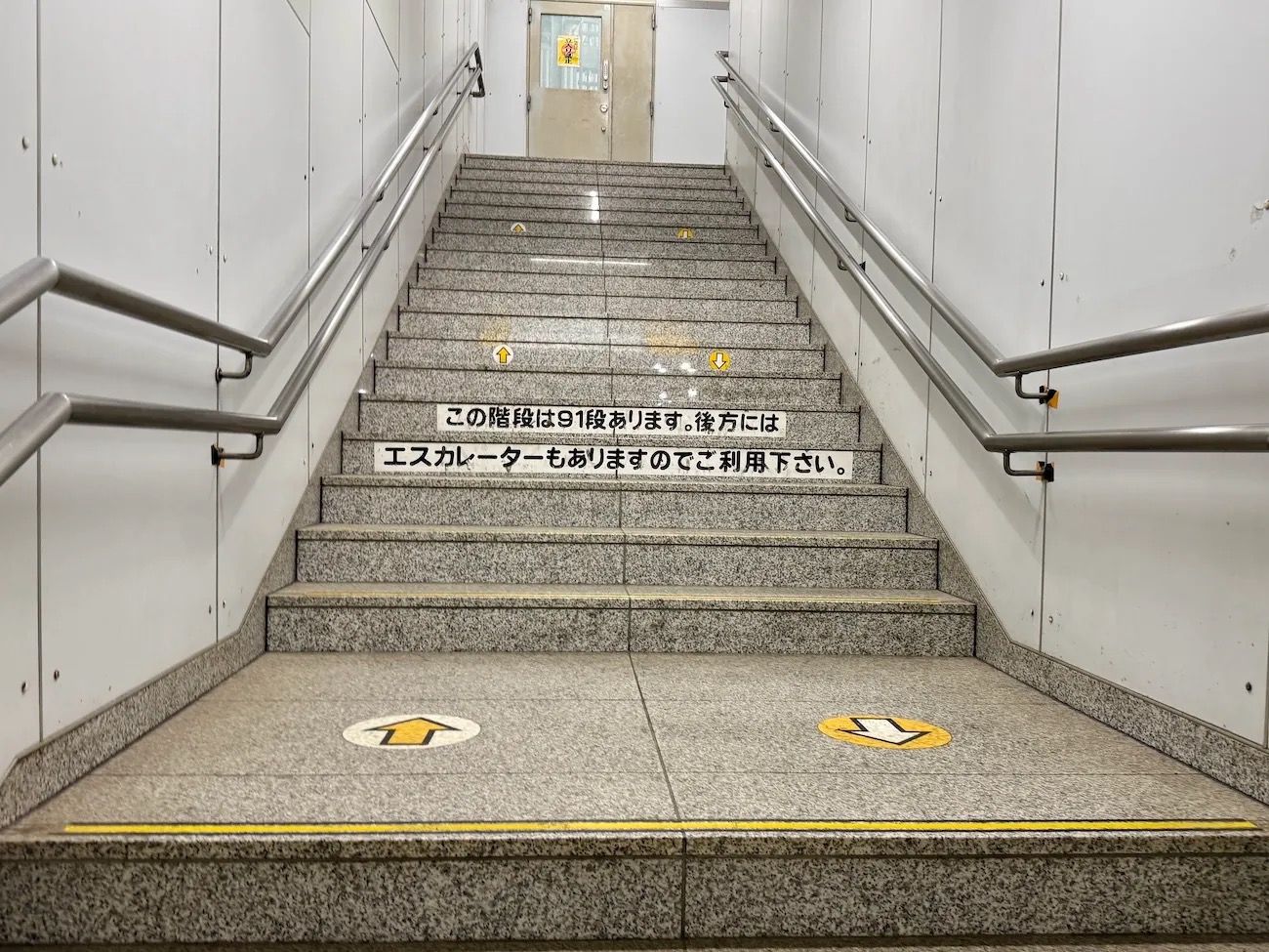 ▼ “There are 91 steps on these stairs. There’s an escalator behind you as well, so please use it.”