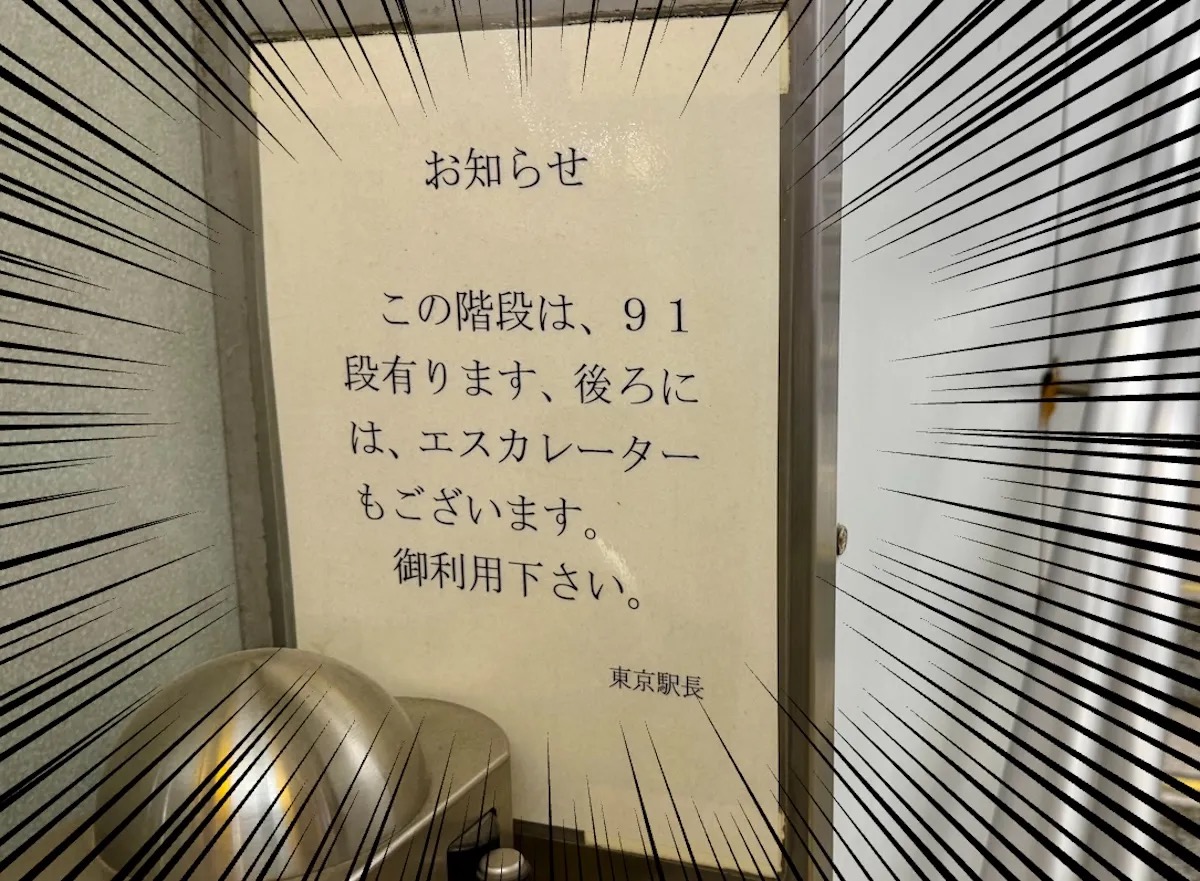 ▼ “Notice. There are 91 steps on these stairs. There is also an escalator behind you. Please use it.”