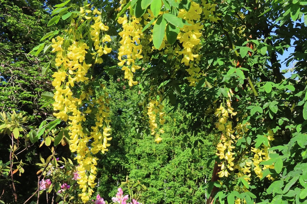 And rounding out the trio are the laburnum flowers, also known as golden chain or golden rain.