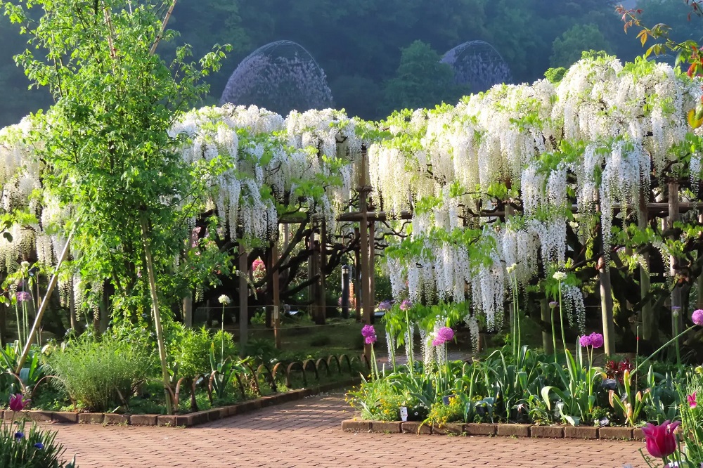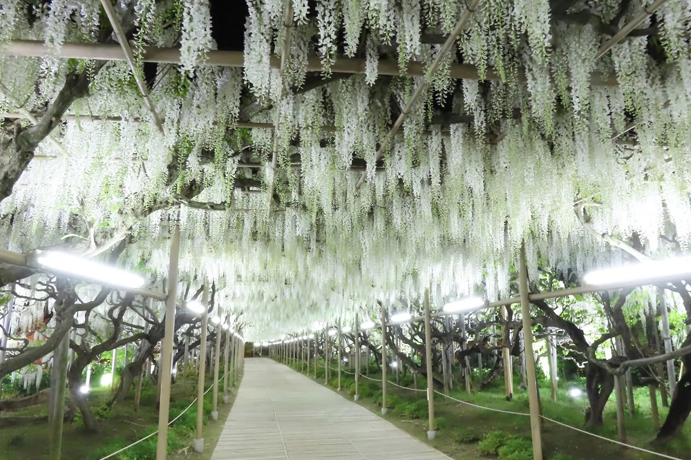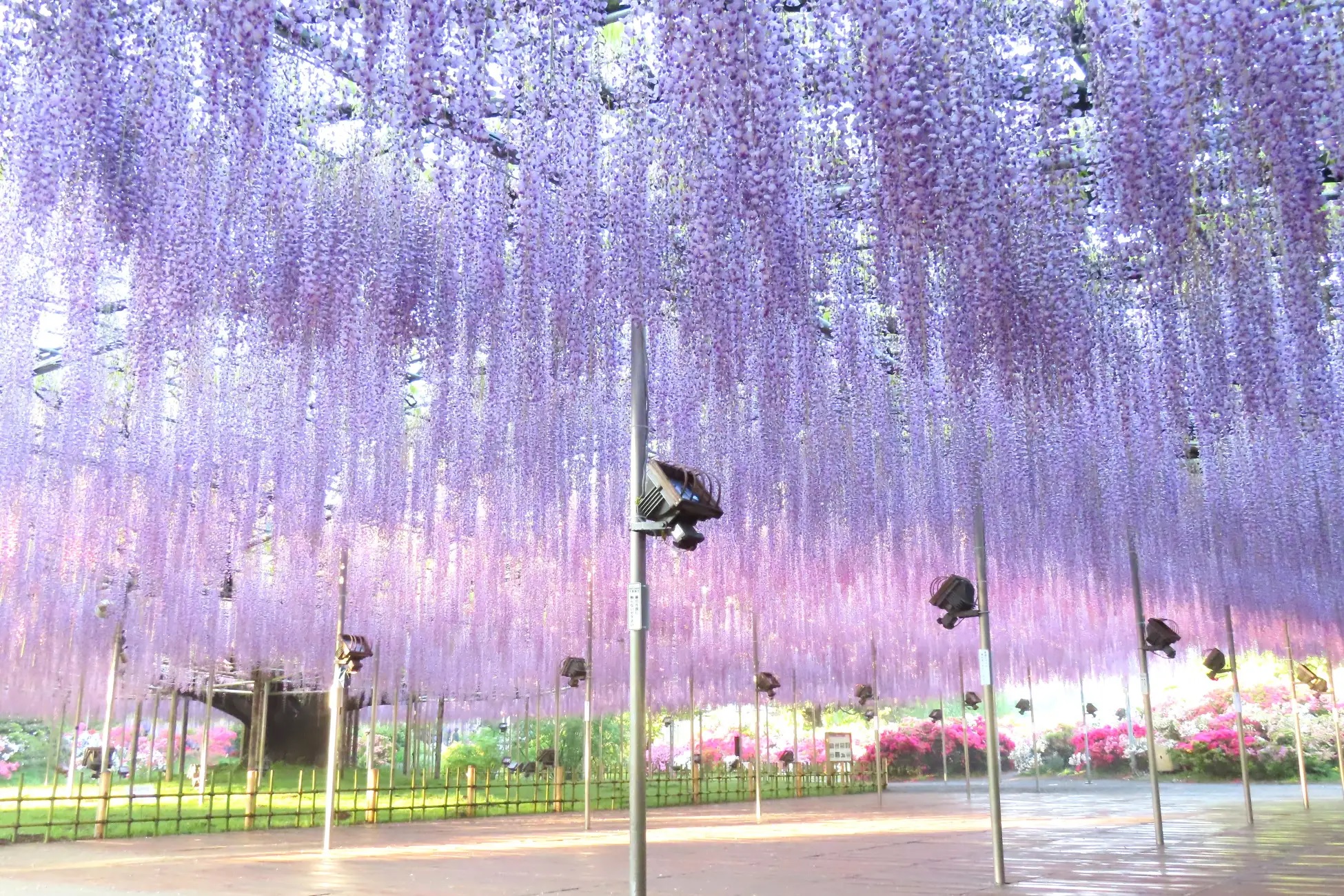 As mentioned above, though, there are hundreds of other wisteria trees at the park, including an 80-meter tunnel of white wisteria flanking a footpath.