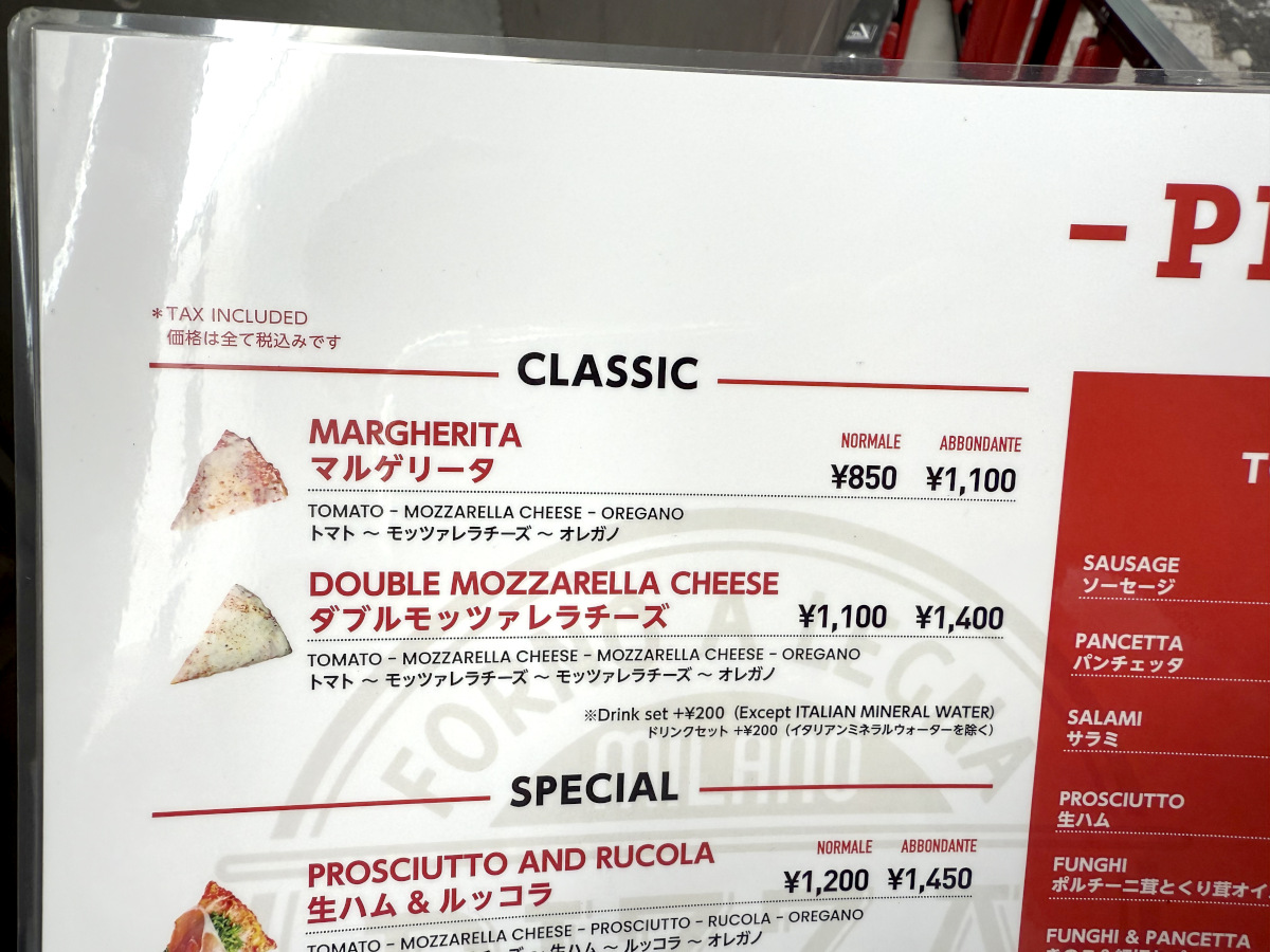 After placing our order via a touchscreen panel and paying, we waited for just about 10 minutes for our abbondante-sized Double Mozzarella Cheese (1,400 yen [US$9.60]).