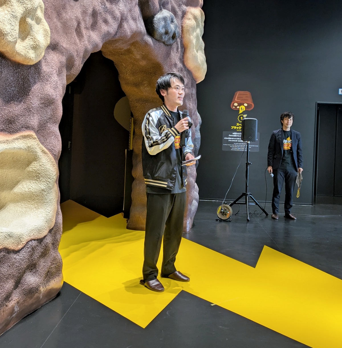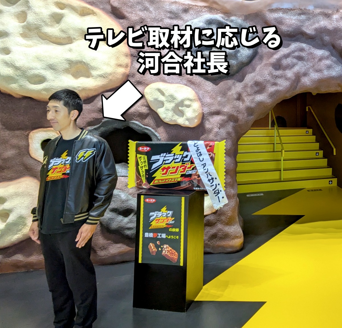 The event opened with a greeting from President Tatsunobu Kawai, who explained that from their initial idea to expand and revamp the factory in 2023 for Black Thunder’s 30th anniversary the following year, it took two years to complete the entire renewal and open up the Black Thunder Waku-zaku Factory.
