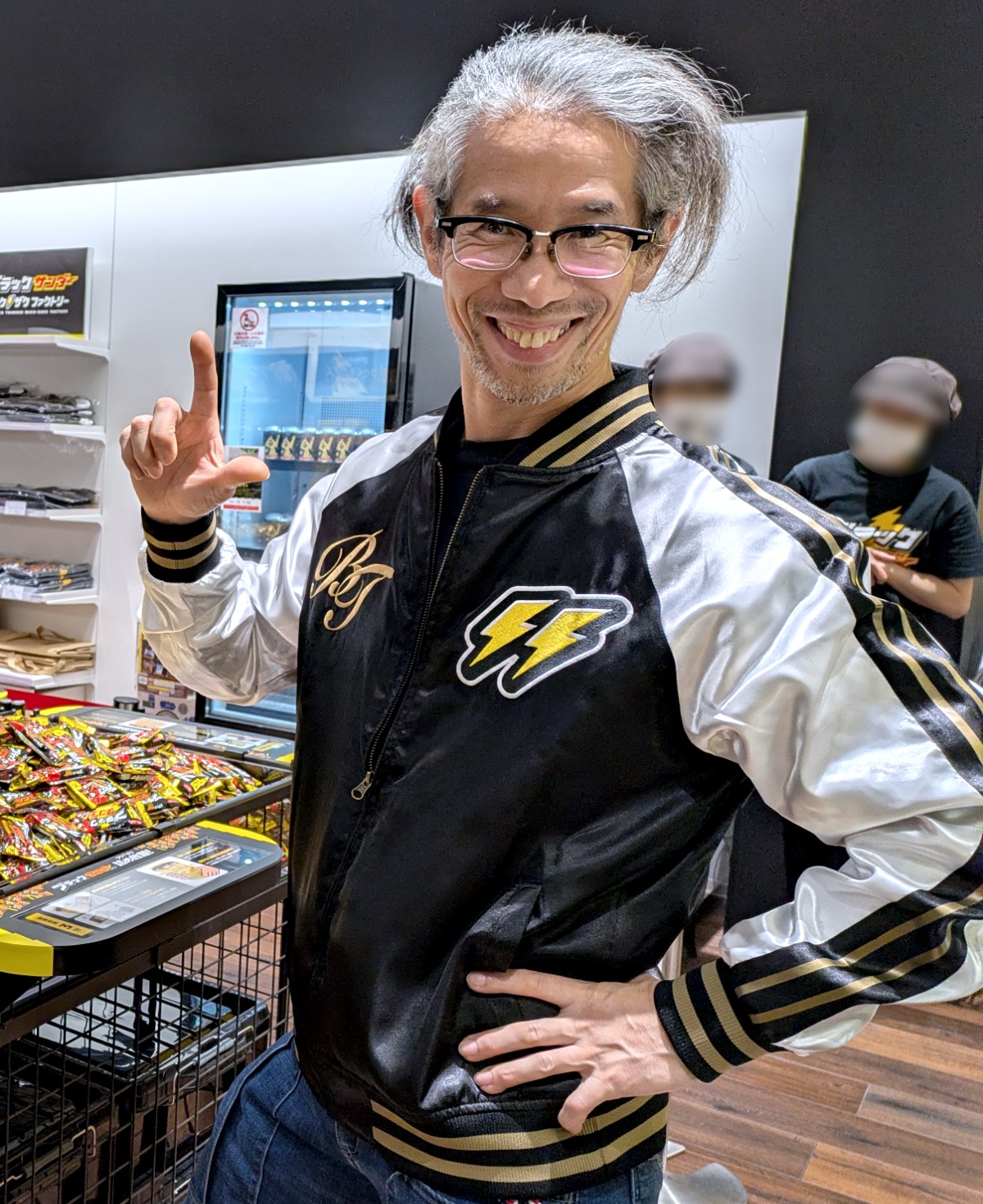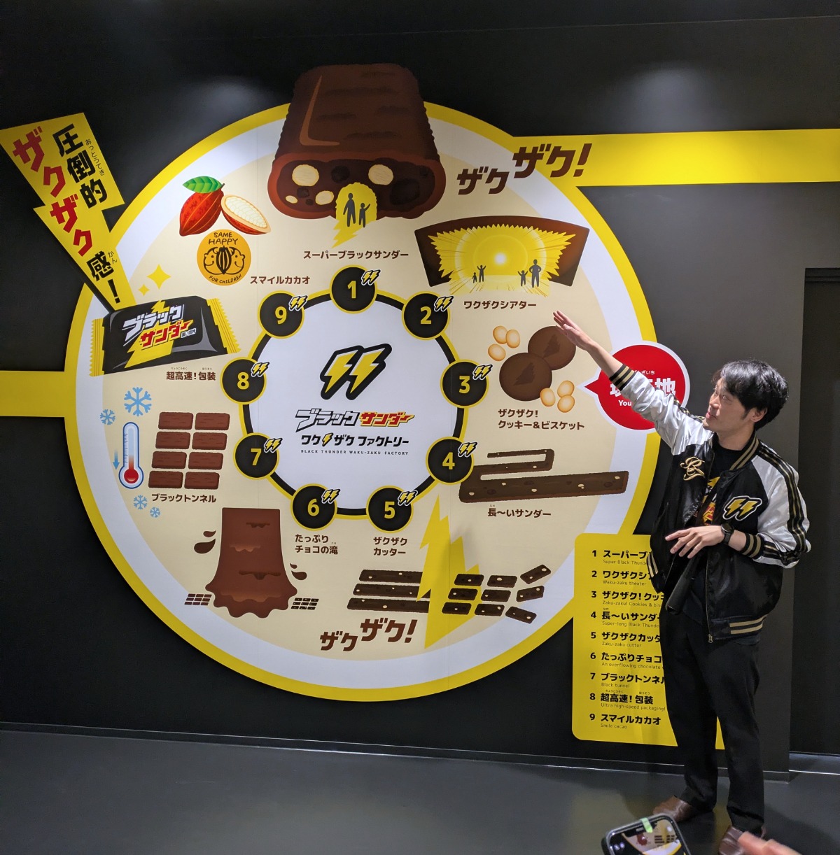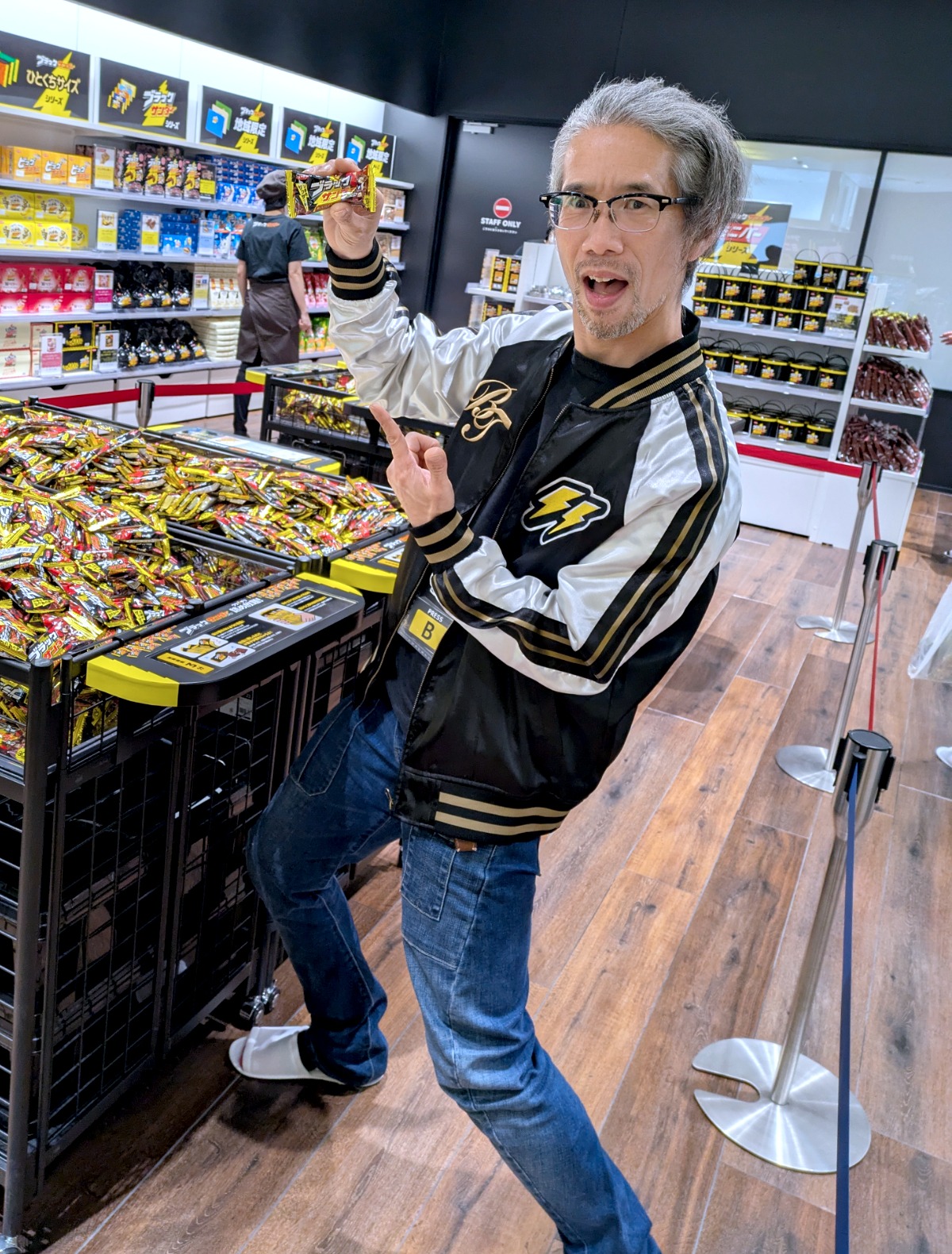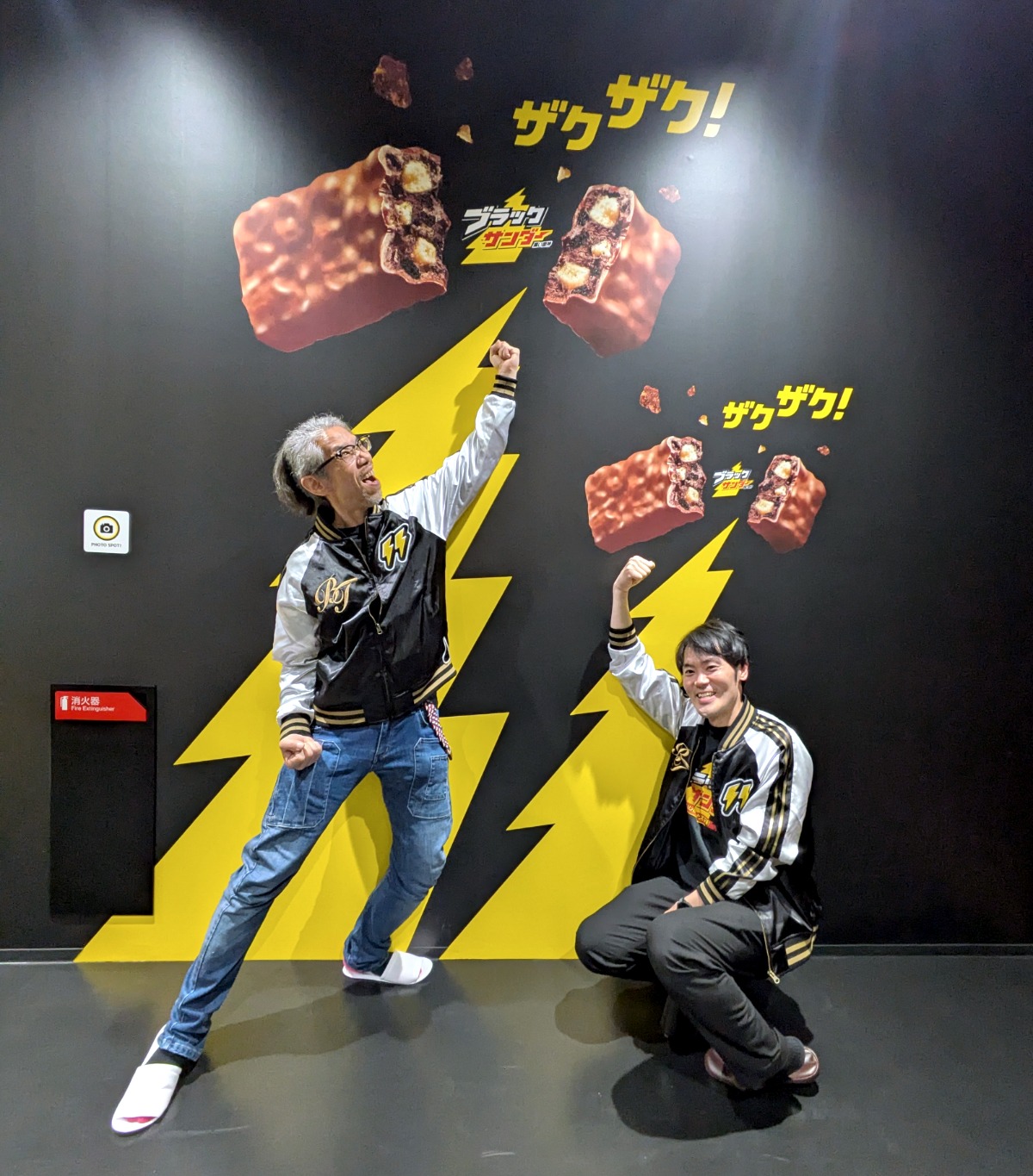 Developed by Yuraku Confectionery in Toyohashi, Aichi, in 1994, it quickly became a beloved product nationwide, often working in collaboration with other companies to create a food mash-up, like this year’s dessert range at Sushiro. Now, this month will see the introduction of the first-ever factory tour, at the Black Thunder Waku-zaku Factory in Toyohashi on May 27. Our ace Japanese-language reporter Mr. Sato joined the media preview, expecting to be treated to a tour of the production process, but was instead thunderstruck when he laid eyes on the jackets worn by the employees, deciding he must have one at all costs.