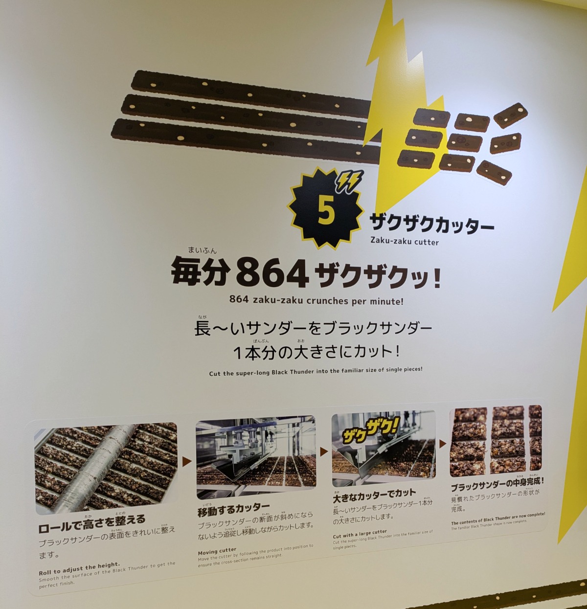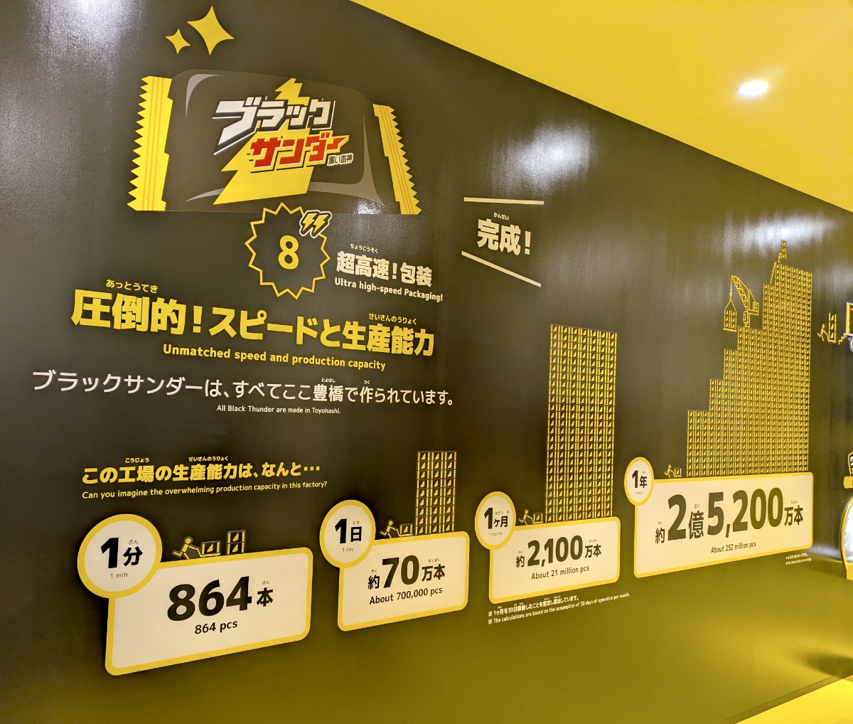 The main feature, the factory tour corridor, is divided into nine areas. From there, visitors can watch the production process up close and learn the secrets to Black Thunder’s deliciousness. They’ve even included a section with immersive projection mapping, allowing guests to experience the process from the perspective of the ingredients that go into making Black Thunder.