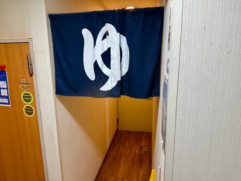 ▼ The Japanese character ゆ, pronounced “yu” and meaning “hot bath water,” marks the entrance to the bath area.