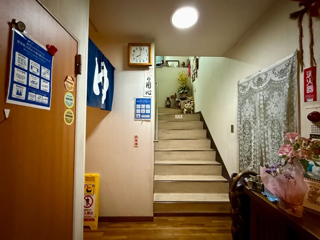 Tachikawa is a pretty developed part of Tokyo, but Ryogetsu is situated on a largely residential street. Ostensibly to stay unobtrusive, the exterior sign isn’t illuminated at night, but Granny leaves the light on for you in the entryway, which also has signs with the hotel’s name written in Japanese (亮月)