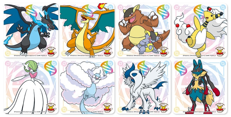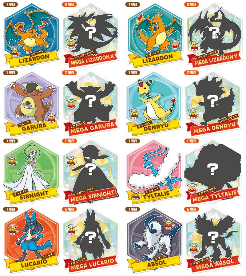 ▼ The Mega Evolutions also appear on coasters (one given at random for each drink order) and dual-layer stickers (one at random for every set of entree and dessert).