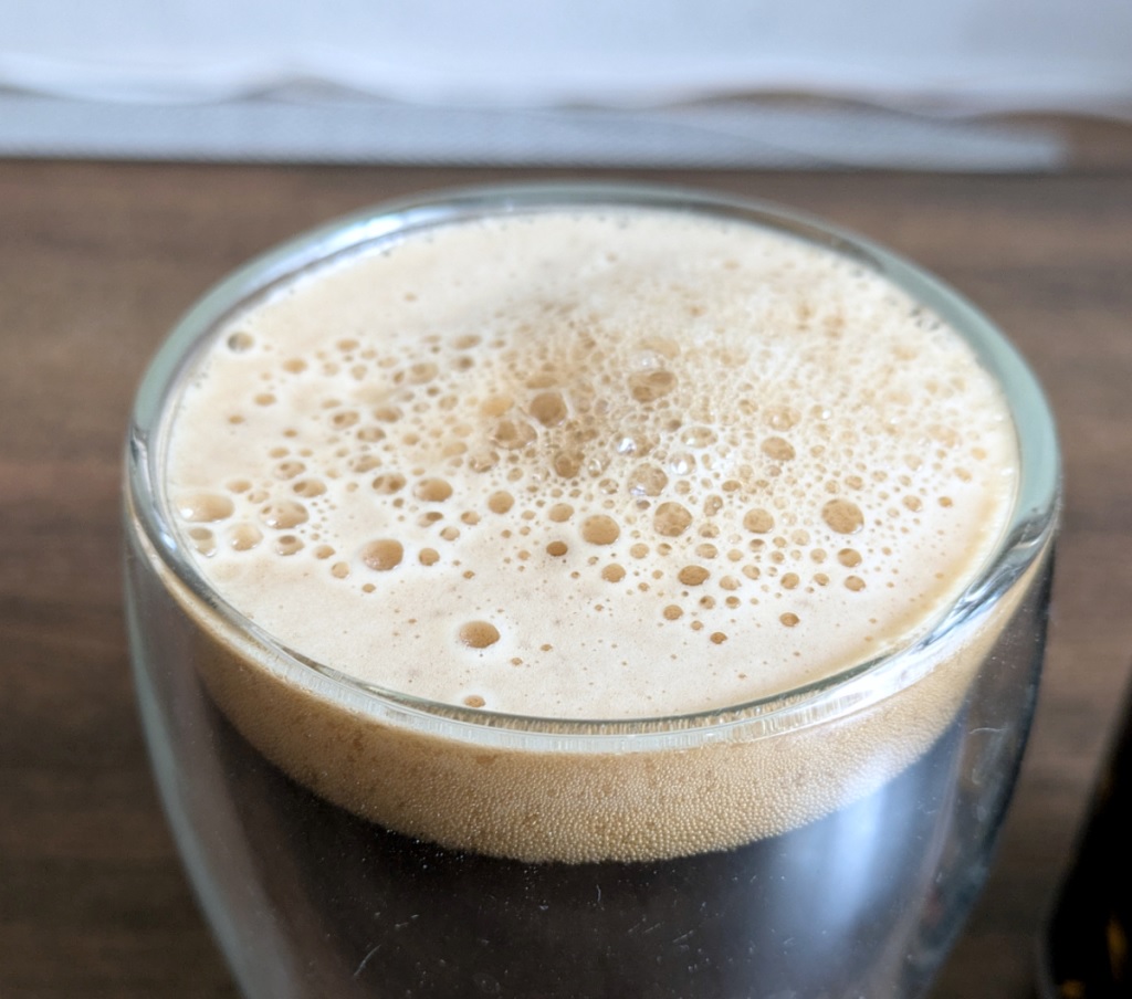 And when he did take that sip? It was excellent. Gently pushing through the top layer of soft, creamy foam, he found a robust bitterness that gives the beer a sense of psychological weight. But the bitter notes weren’t alone in the rich flavor profile, as they were accompanied by sensations of coffee. Surprisingly, there was no candy-like sweetness, but the flavor ends with a faint lingering chocolatey impression that tickles the nose and entices you into another sip.