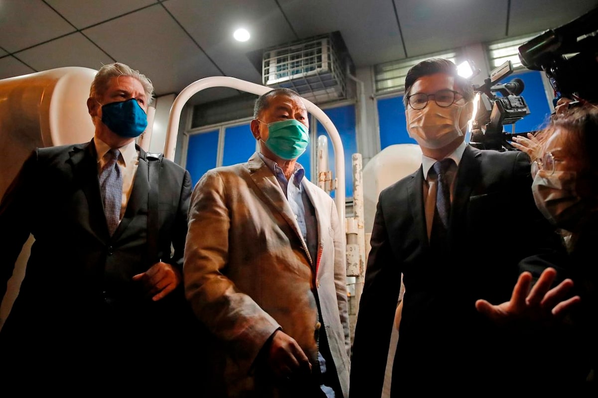 Hong Kong media tycoon and newspaper founder Jimmy Lai, walks out from a police station after being bailed out in Hong Kong, on Aug. 12, 2020.The Associated Press