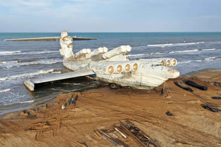 The hybrid ship-aircraft, officially named Korabl Maket, was built by the Soviet Union during the Cold War and weighed 240 tonnes when empty, with a 72ft height, a 123ft wingspan, and a top speed of 310mph.