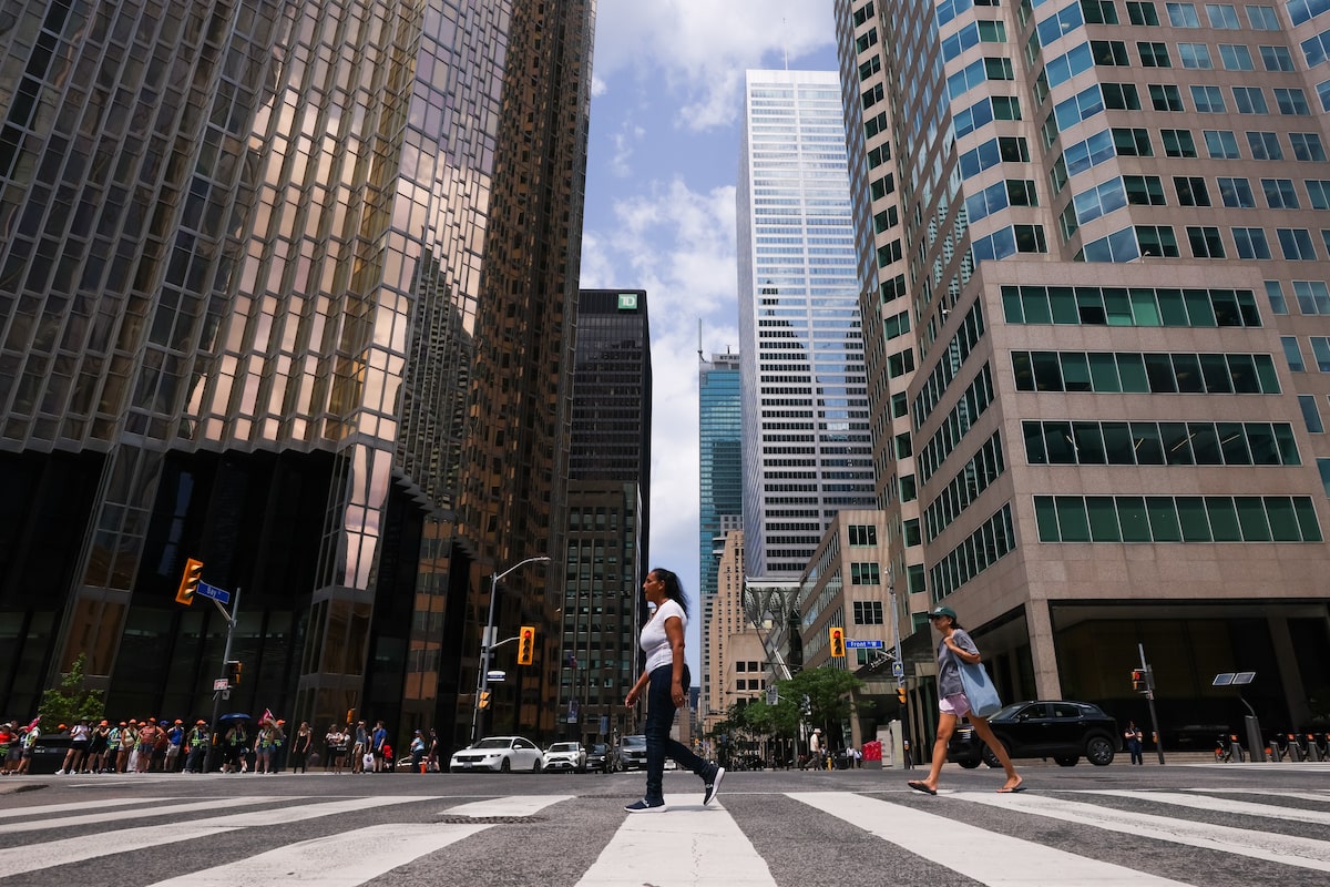 People walk in Toronto’s financial district on July 3, 2025.Cole Burston/The Globe and Mail