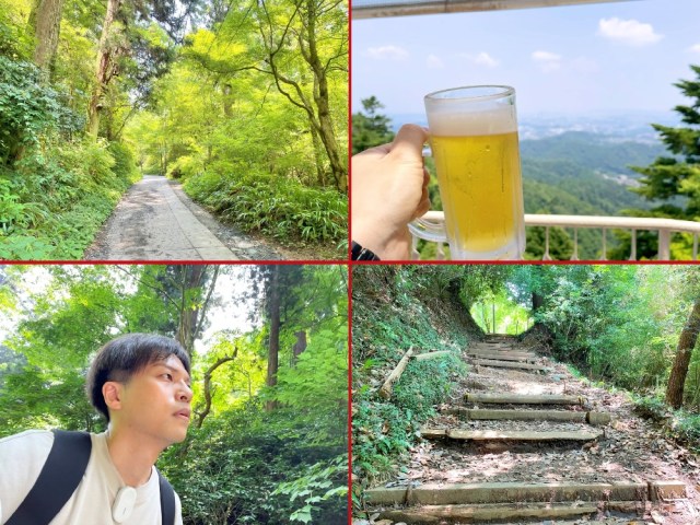 We both do and do not recommend hiking to Tokyo’s beautiful mountain beer garden in midsummer