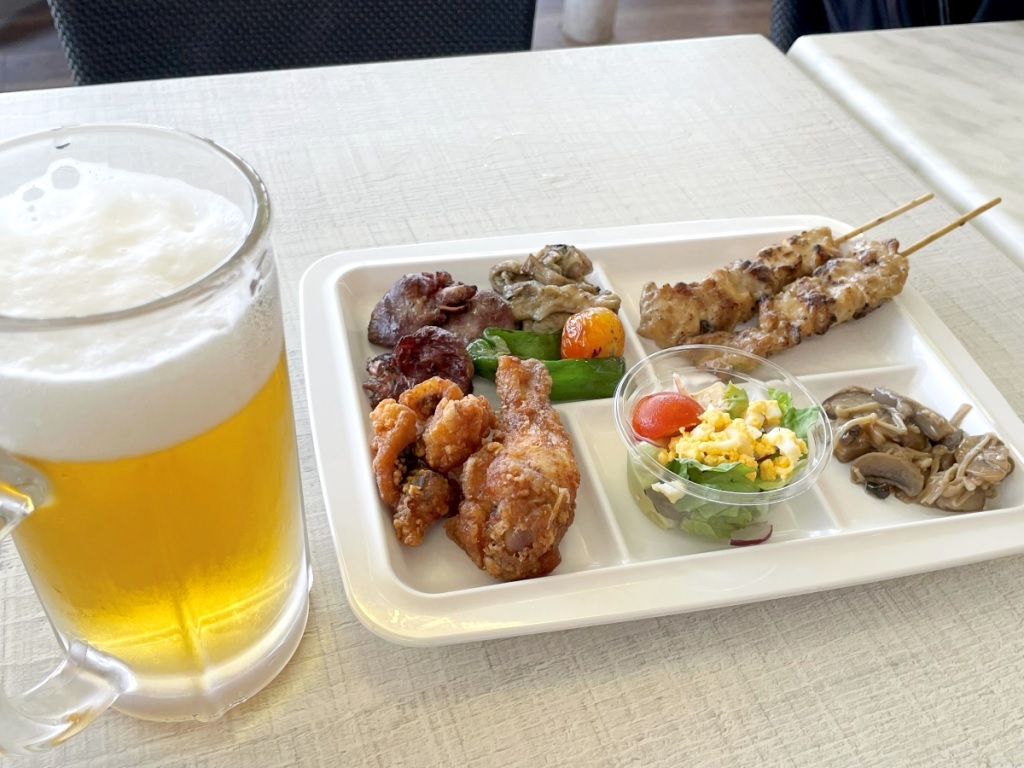 In addition to beer, he also had plenty to eat, with options including yakitori (grilled chicken skewers), karaage (Japanese-style fried chicken), and ramen.