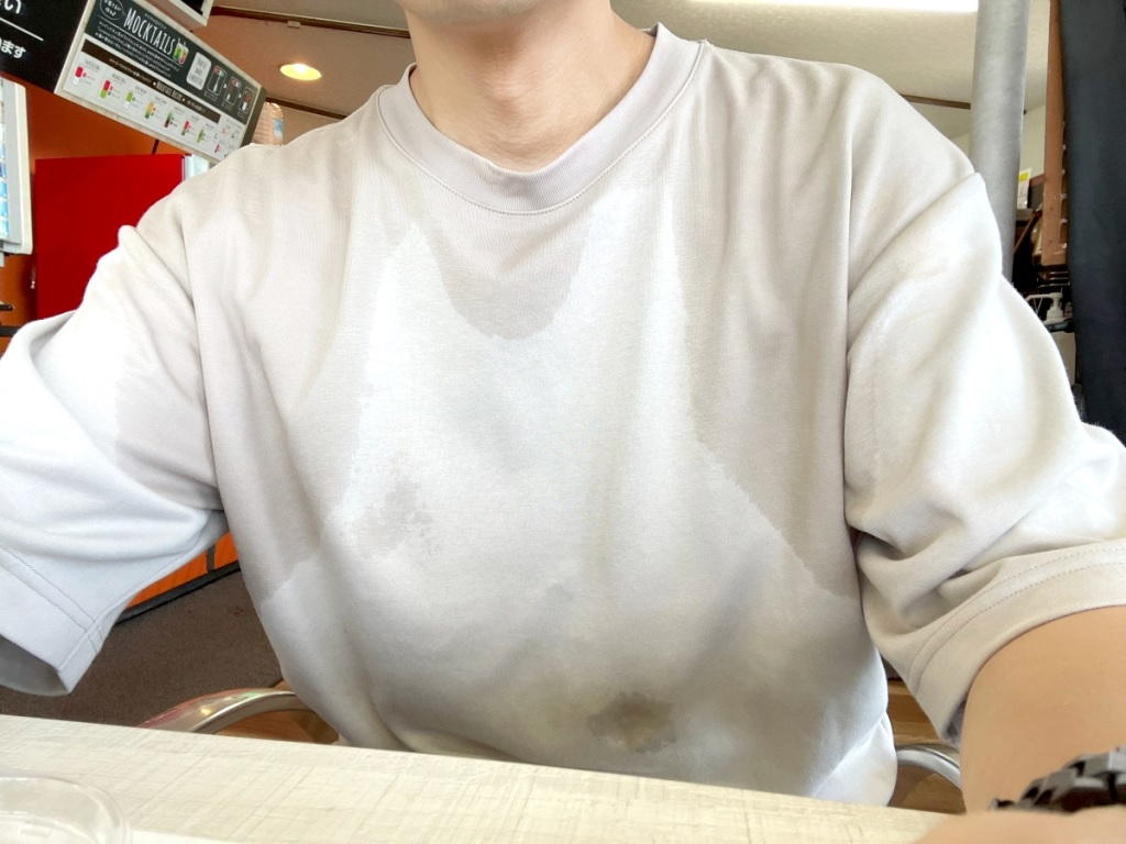 ▼ Behold Ahiruneko’s T-shirt after his hike, so drenched with sweat that there’s a clear outline of the tank top he has on under it.