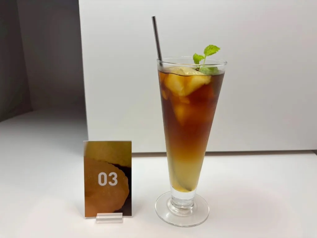 Fruit sandwiches may be a firmly established part of food culture in Japan, but fruit coffee is still decidedly unorthodox. Himitsu no Drip shows that the concept can work, though, as this drink, which has a touch of carbonation, is invigoratingly refreshing, with the juiciness of the fruit, which is grown without any pesticides or chemical or animal fertilizers, gives way to a lingering sense of spice at its finish.