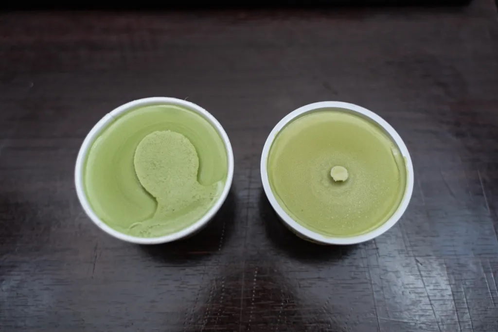 We started with a visual check. It’s a little hard to see in camera-captured images, but when viewed with the naked, tea-loving eye, the Gyokuro Häagen-Dazs is a brighter shade of green than the Green Tea. Since neither ice cream uses any artificial coloring or aromas, we think it’s safe to credit the difference to the quality of the powdered gyokuro leaves and gyokuro extract that Häagen-Dazs puts into the new flavor.