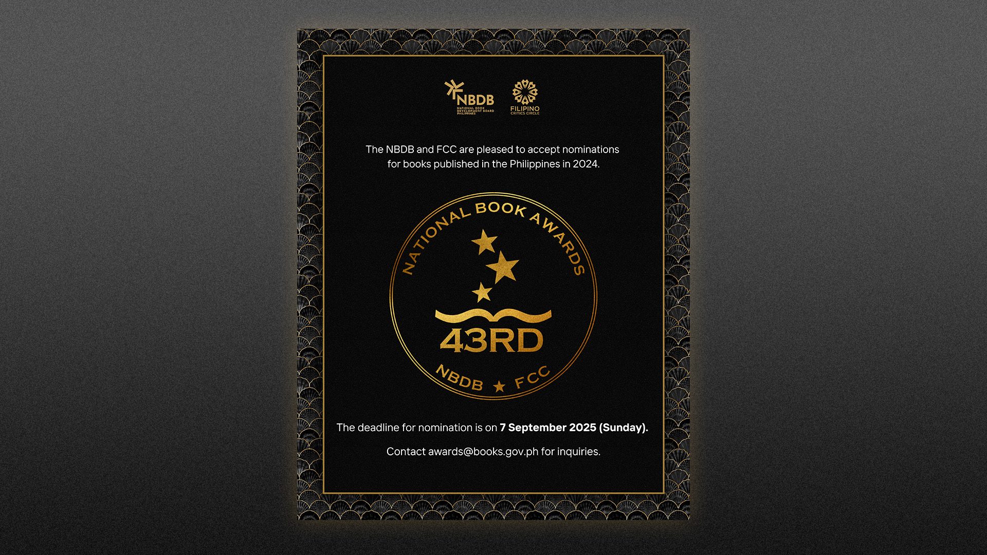 The National Book Development Board (NBDB) and the Filipino Critics Circle (FCC) are now accepting nominations for the 43rd National Book Awards (NBA).