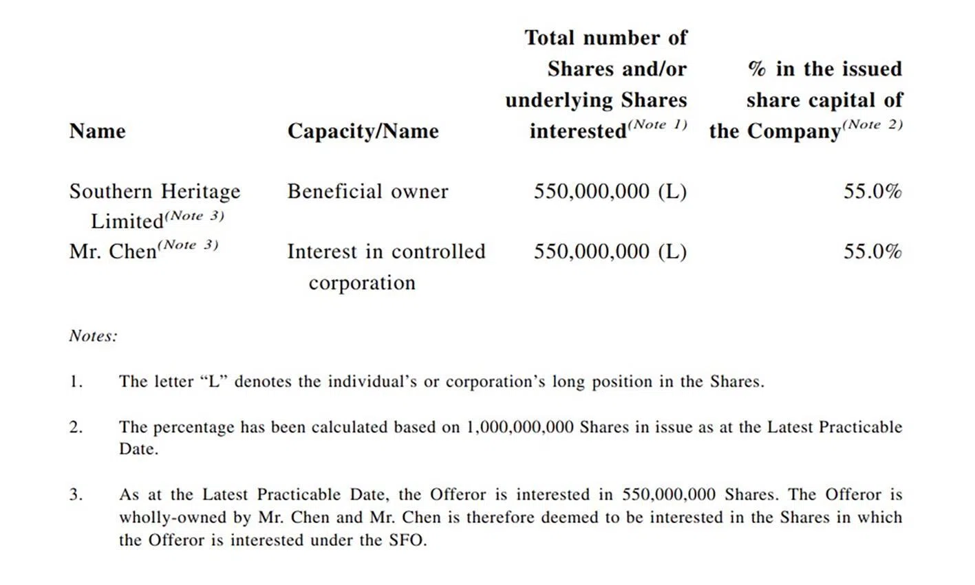 A breakdown of Southern Heritage, and by extension, Chen Zhi’s stake in Khoon Group is shown in another composite filing related to the share purchase agreement.