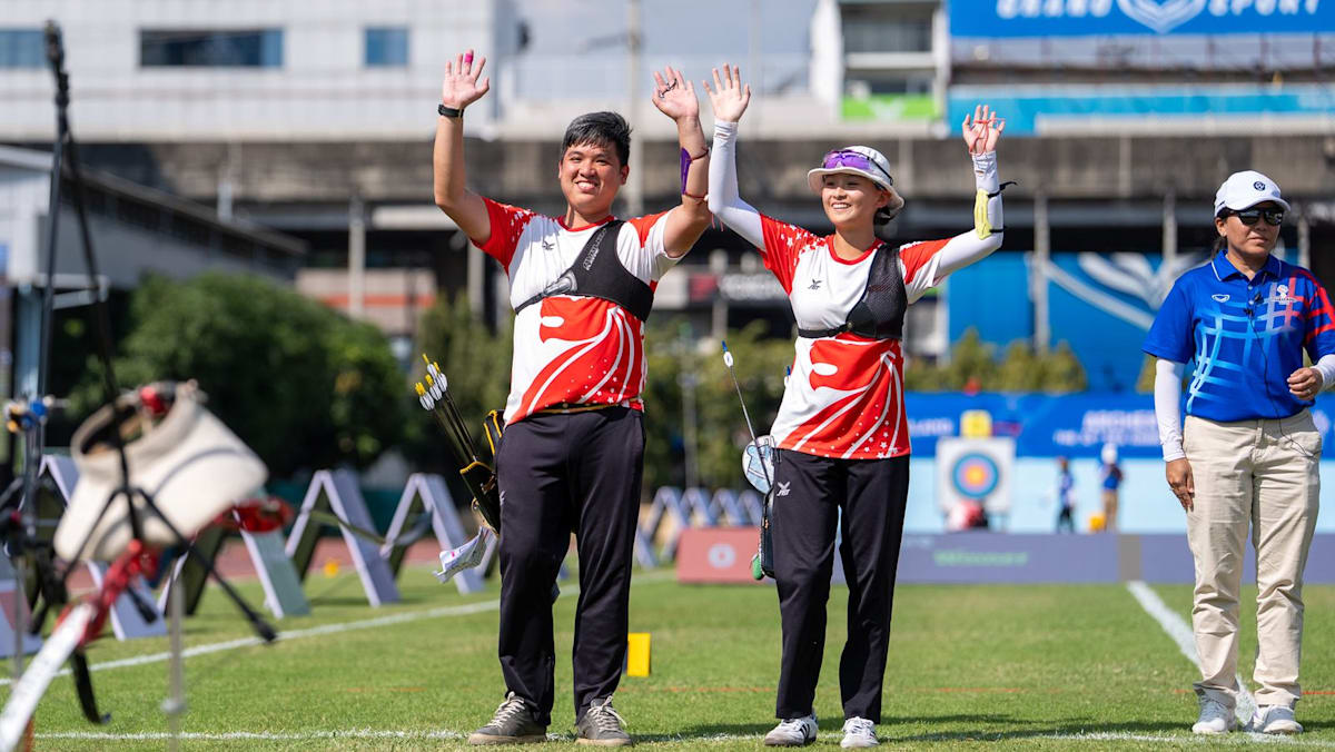 The mixed recurve team beat the Philippines and Indonesia en route to the final. Mixed recurve is when one male archer and one female archer shoot together while using recurve bows. Such bows have limbs that curve away from the archer at the tips.