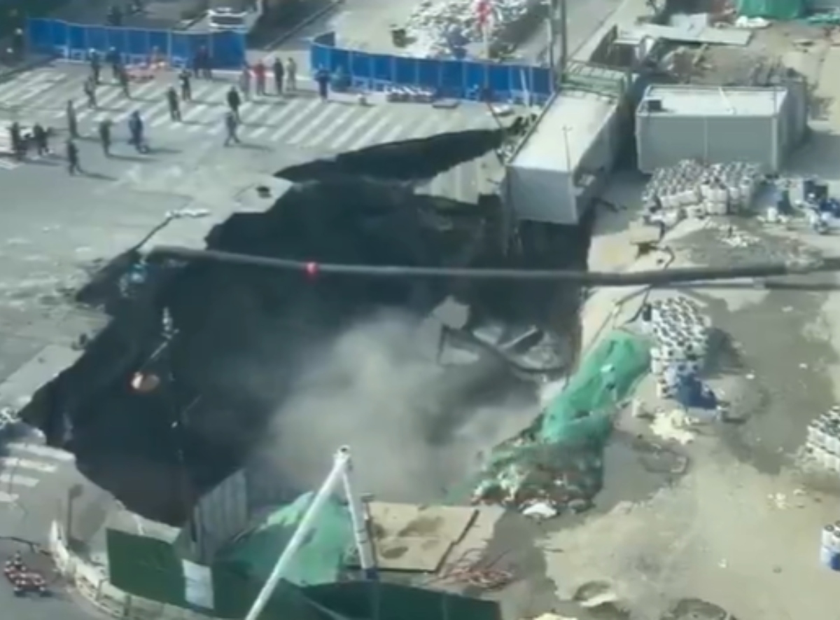 However, no reports of injuries or casualties in the following incident. Local authorities have confirmed that there were no fatalities or injuries. The incident occurred at the junction of Qixin Road and Li’an Road, an area currently undergoing significant underground works for the new Jiamin Metro Line.