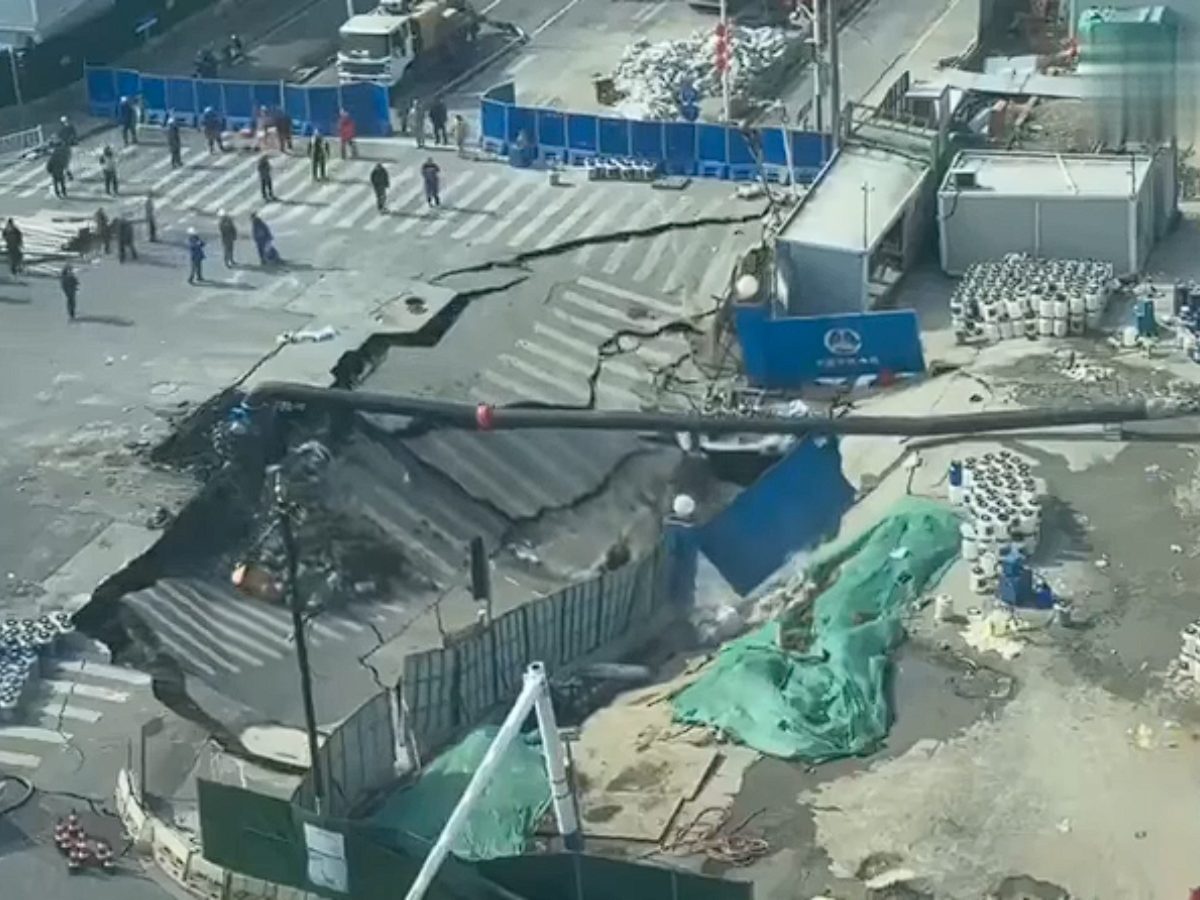 Shanghai: A viral video captured motorists and pedestrians gasping in horror as the ground opened up and swallowed a road in Shanghai, China. The incredible CCTV footage, which has since captured global attention online, shows workers scrambling out of harm’s way in the seconds before a massive sinkhole appeared to consume the street.