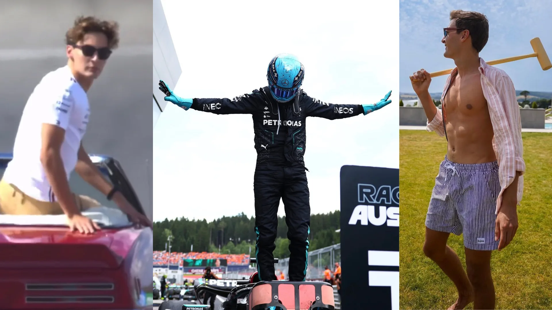 Russell’s Instagram is the place to see his fashionable fits, post-race thoughts, and off-season antics, but fans have picked up a not-so-subtle trend appearing on his feed – Russell is prone to a shirtless picture (or two).