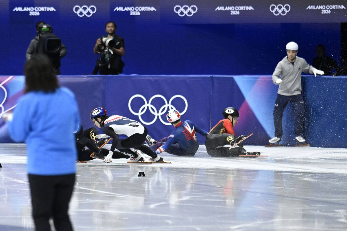 He had briefly taken the lead after sweeping around the outside—a move that secured his victory in the third semi-final—but slipped back to third before tumbling on the ice, reports the Express.