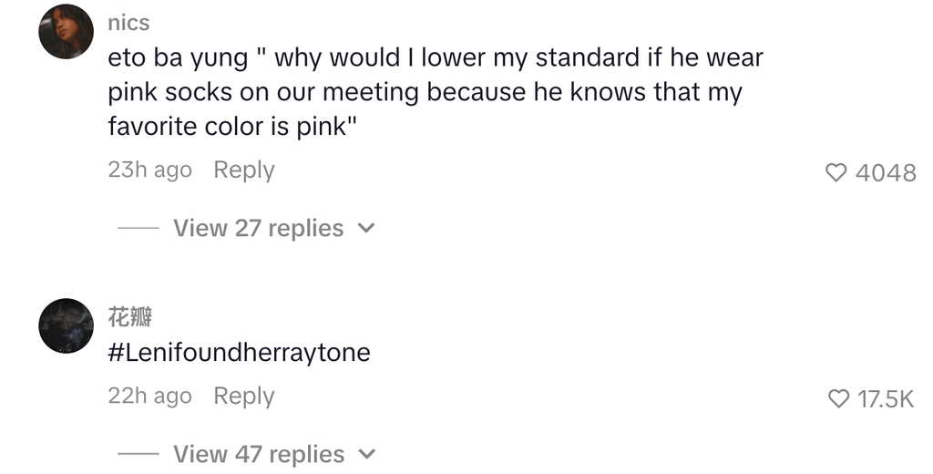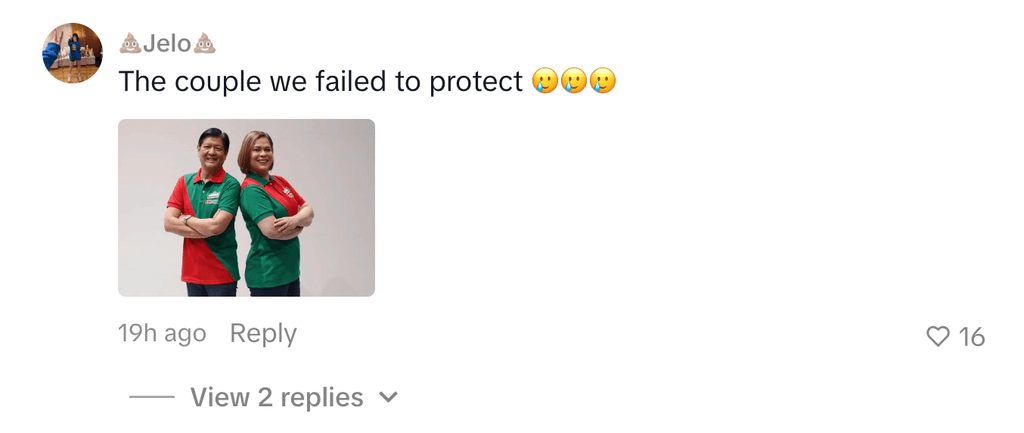 Like fans of a popular love team or online couple, TikTok users flooded the comment section with jokes about Sara’s supposed reaction to “Uni-Pink.” Other Filipinos lamented about the “SaBong” couple that they have failed to protect.