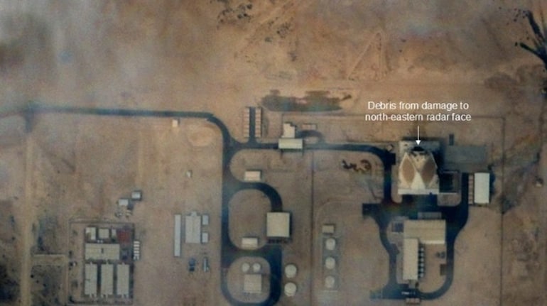 Satellite imagery confirmed that an Iranian drone, or other projectile, was able to successfully damage the US Ballistic Missile Early Warning Radar System in Qatar, which is the largest radar operated by the US in the Middle East. (Credit: OSINTdefender)