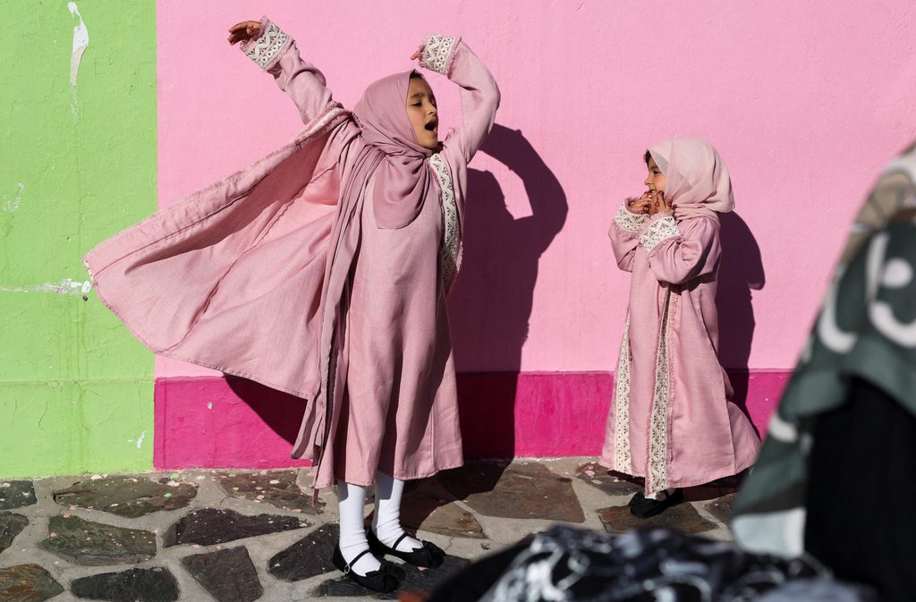 Muslim children react after the Eid al-Fitr prayer, which marks the end of the Muslim holy fasting month of Ramadan, in Bo-Kaap, Cape Town, South Africa, on March 21, 2026. PHOTO BY ESA ALEXANDER/REUTERS