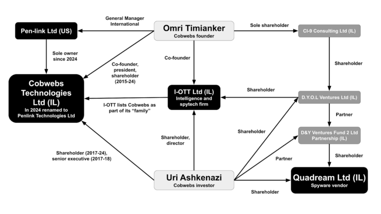 An analysis of corporate records and other public information has revealed that Cobwebs Technologies shares links to Israeli spyware vendor Quadream through Omri Timianker, the founder and former president of Cobwebs Technologies, who now oversees Penlink’s international operations. The company is suspected to have shuttered its operations in 2023.