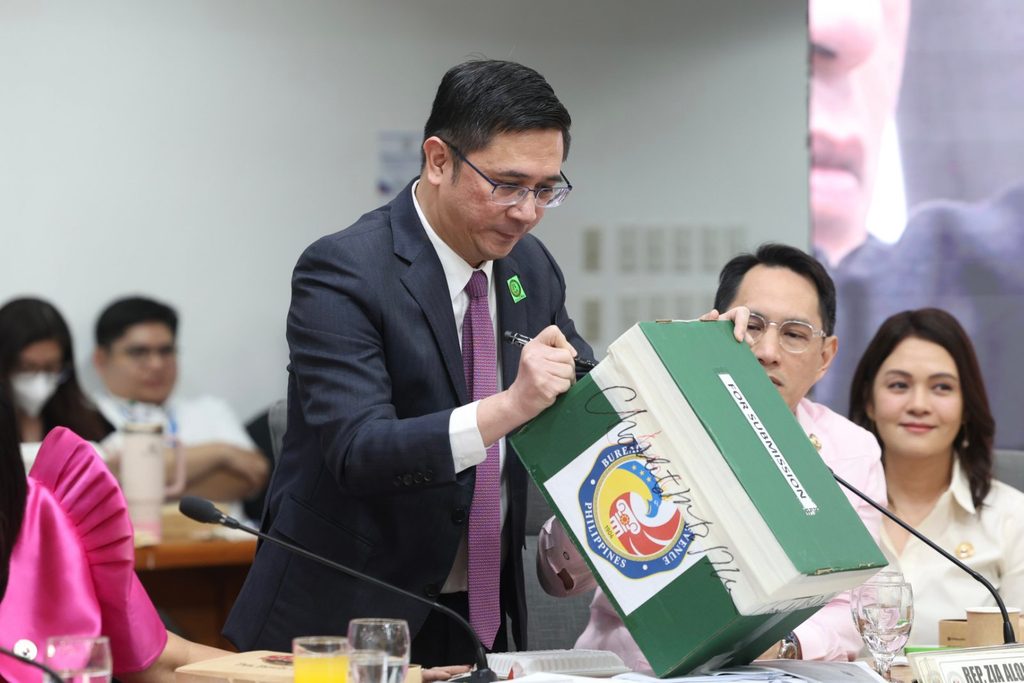 Bureau of Internal Revenue Commissioner Charlie Mendoza signs the taped part of the box containing the tax records of Vice President Sara Duterte on April 22, 2026, as the House justice committee defers a decision on opening the box. PHOTO COURTESY OF THE HOUSE OF REPRESENTATIVES